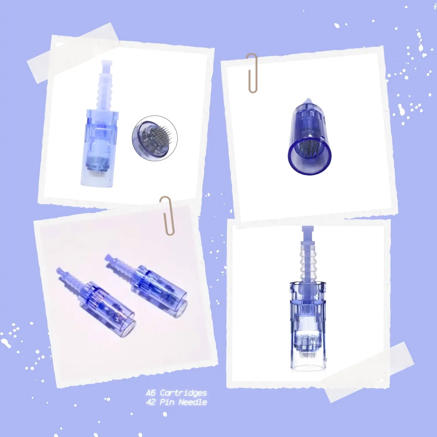 - Cartouches à 36 et 42 goupilles : Meilleur pour renforcer l'hydratation de la peau, améliorer l'apparence des vergetures et réduire la visibilité des pores dilatés. Ils conviennent aux zones plus étendues. La crème anesthésiante est facultative en fonction de la profondeur et du type de traitement.
